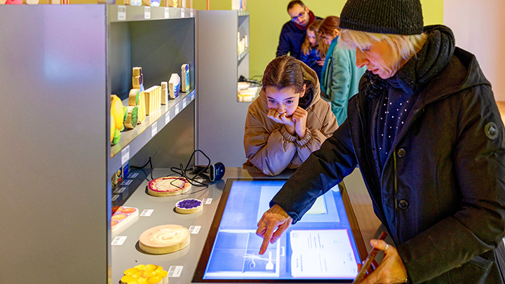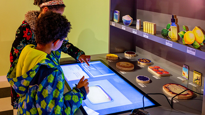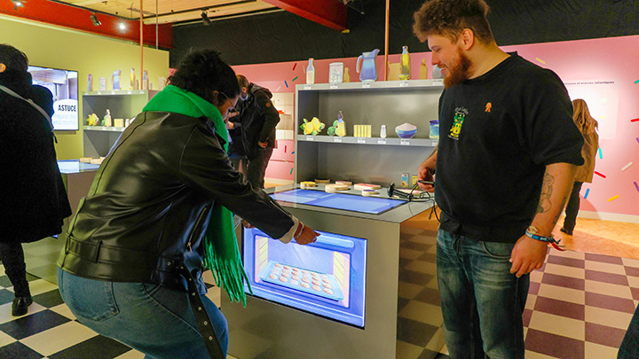 – d’un écran tactile représentant un plan de travail de cuisine sur lequel les visiteurs vont confectionner les recettes
